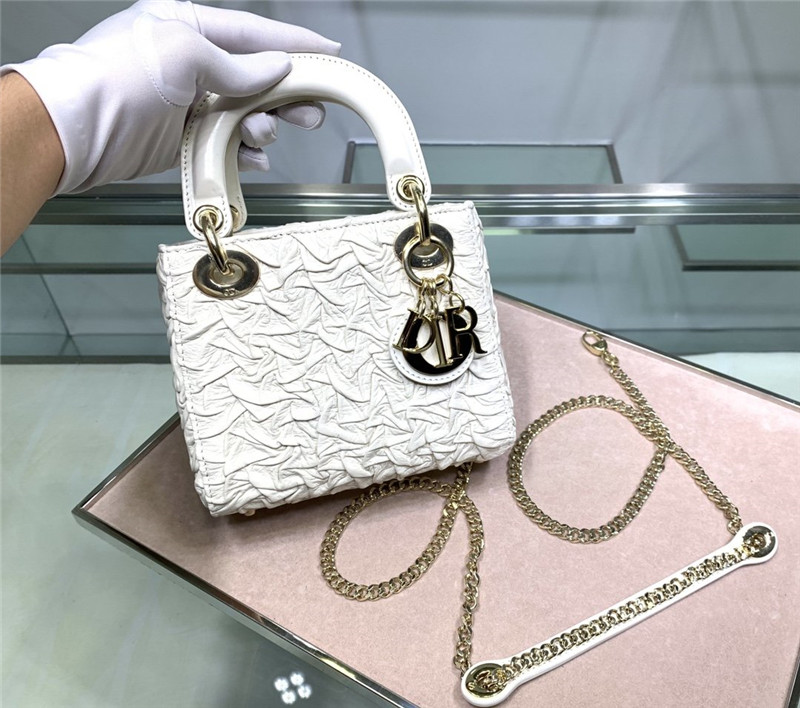 lady Dior embroidered mini white bag