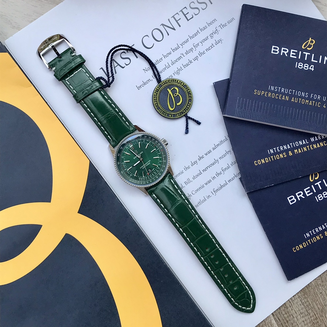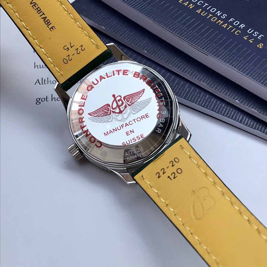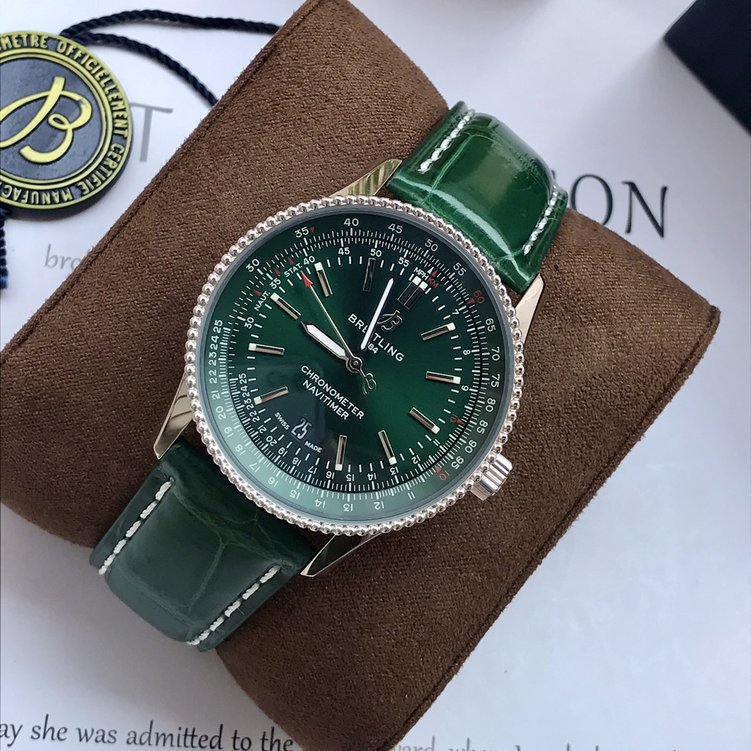 Series:NavitimerModel:A17326361L1P1Colour:GreenCase:MaterialStainless SteelBack:SolidDiameter:41 mmLug Width: 22 mmCalibre:Caliber 17Reserve:38 hoursFrequency:28800 vph