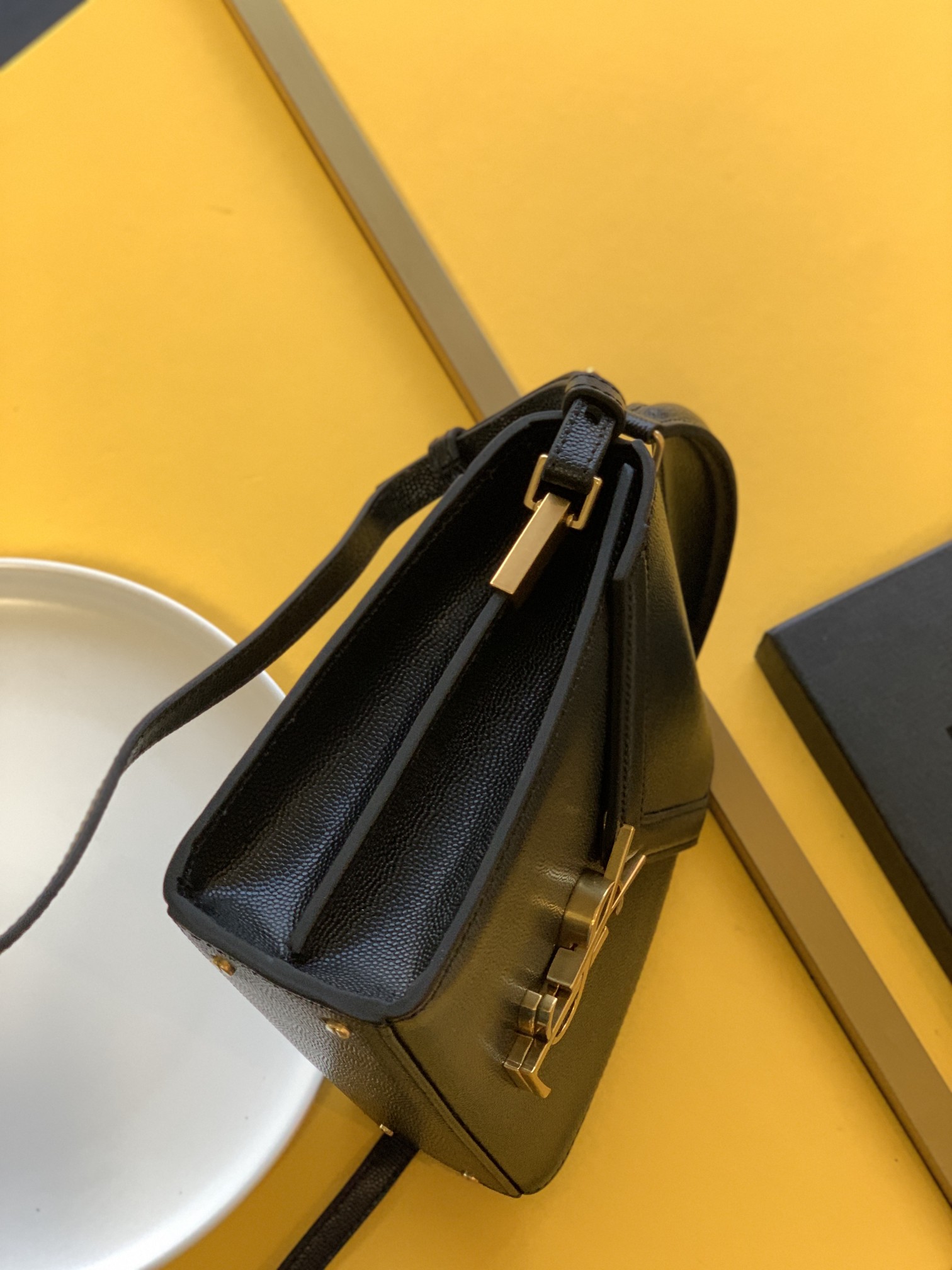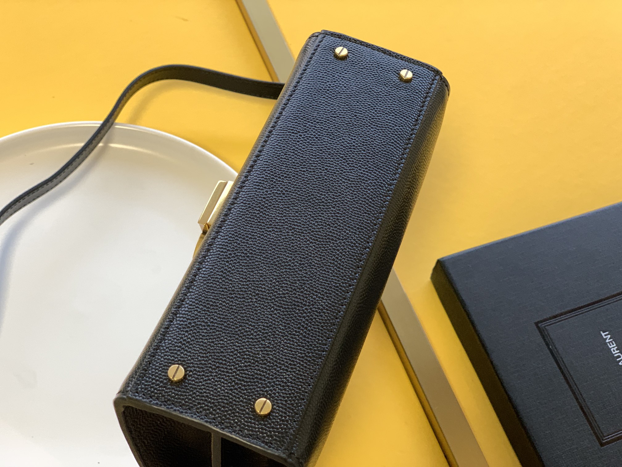 CASSANDRA MEDIUM TOP HANDLE BAG IN GRAIN DE POUDRE EMBOSSED LEATHER