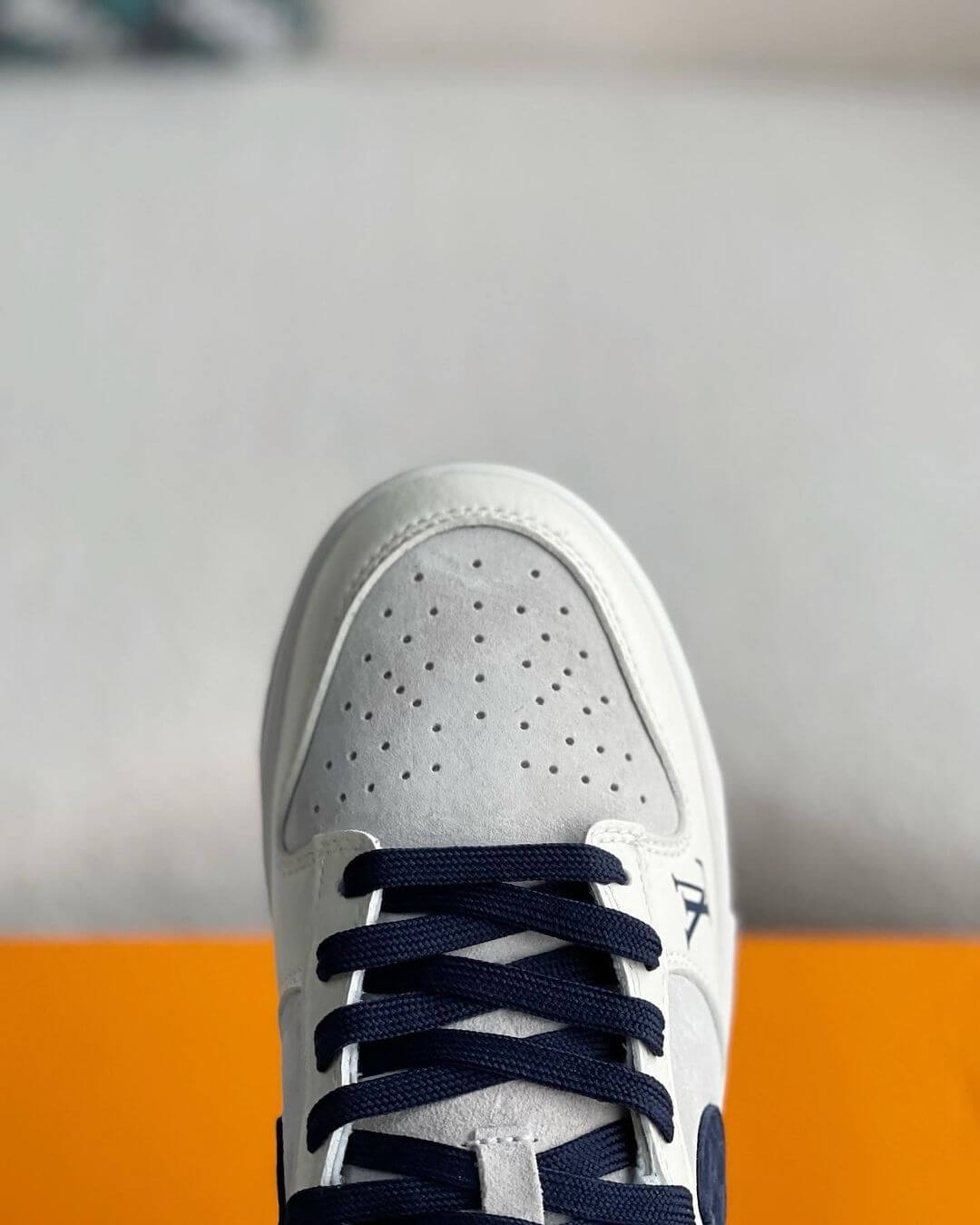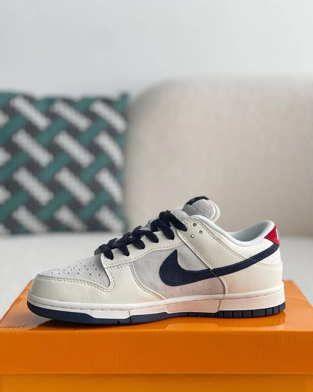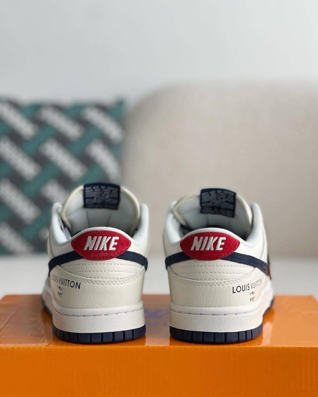 Experience the fusion of iconic brands with these Louis Vuitton x Nike Dunk Low-inspired sneakers. The classic design is reimagined with a touch of luxury, featuring a striking colorway and subtle details that pay homage to Louis Vuitton's signature aesthetic.