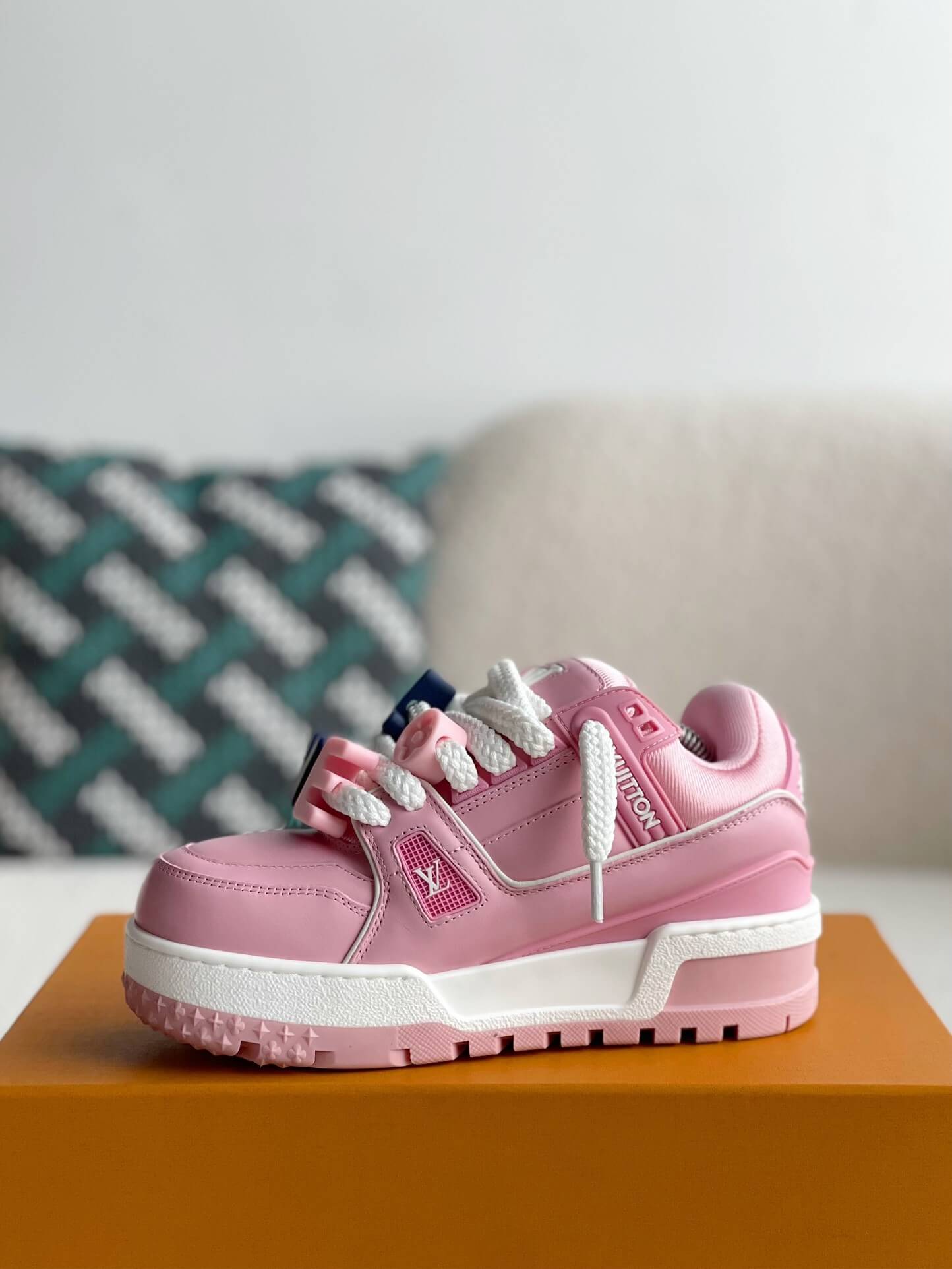 Embrace bold, statement-making style with these LV Trainer Maxi-inspired sneakers. This exaggerated take on the iconic Louis Vuitton Trainer features a vibrant pink colorway and an oversized silhouette for a playful and fashion-forward look. Crafted with meticulous attention to detail, these sneakers offer a premium blend of comfort and luxury, perfect for those who dare to stand out.