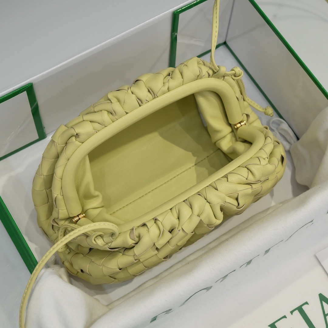 Fake BV 585852 Bottega Veneta Mini Pouch intrecciato leather clutch with strap Light Yellow on sale now, just need $288.00 and includes free worldwide shipping.
