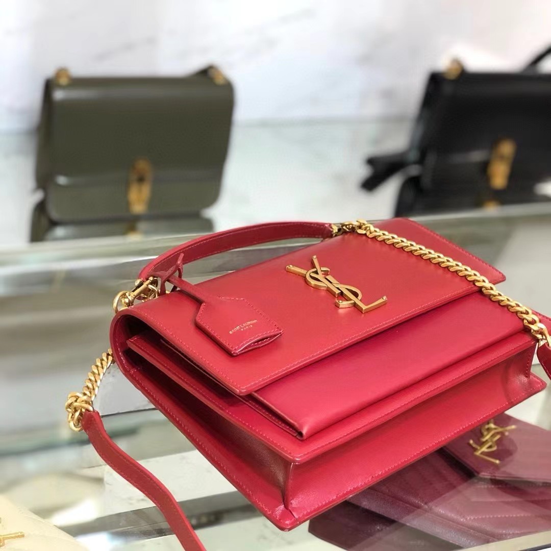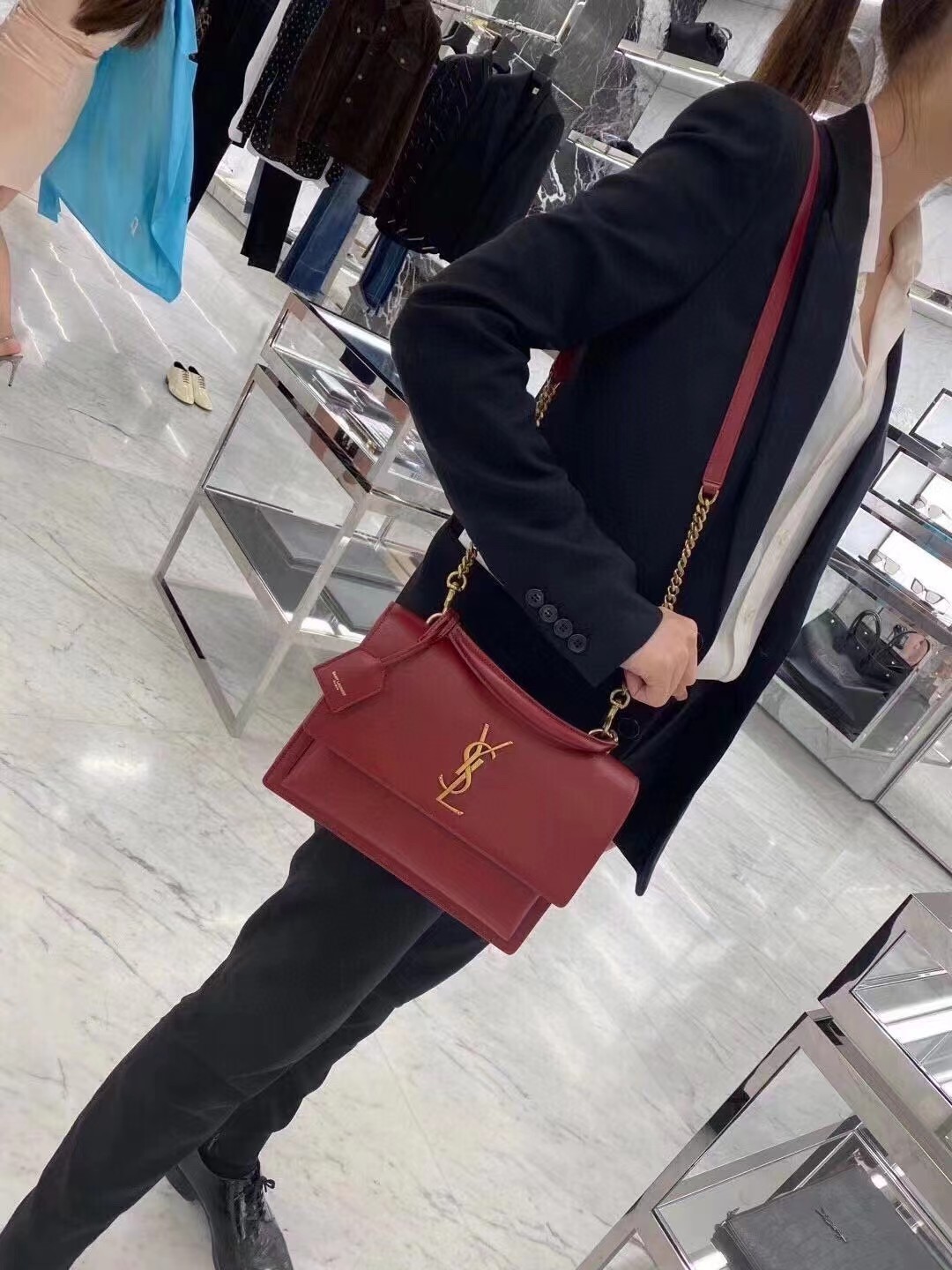 Saint Laurent Solferino Box Bag YSL sunset 25cm wine red